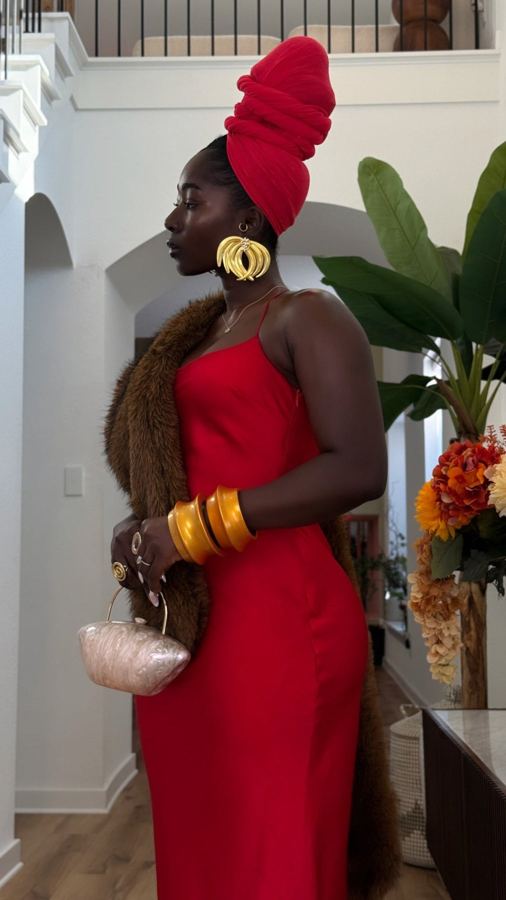 The Palm Radiance Gye Nyame Earrings blend bold luxury with deep cultural meaning. Designed with layered palm-inspired arcs in a luminous gold tone, each pair features a sparkling Gye Nyame symbol at the center — representing God’s ultimate supremacy and divine protection. Lightweight, eye-catching, and unforgettable.