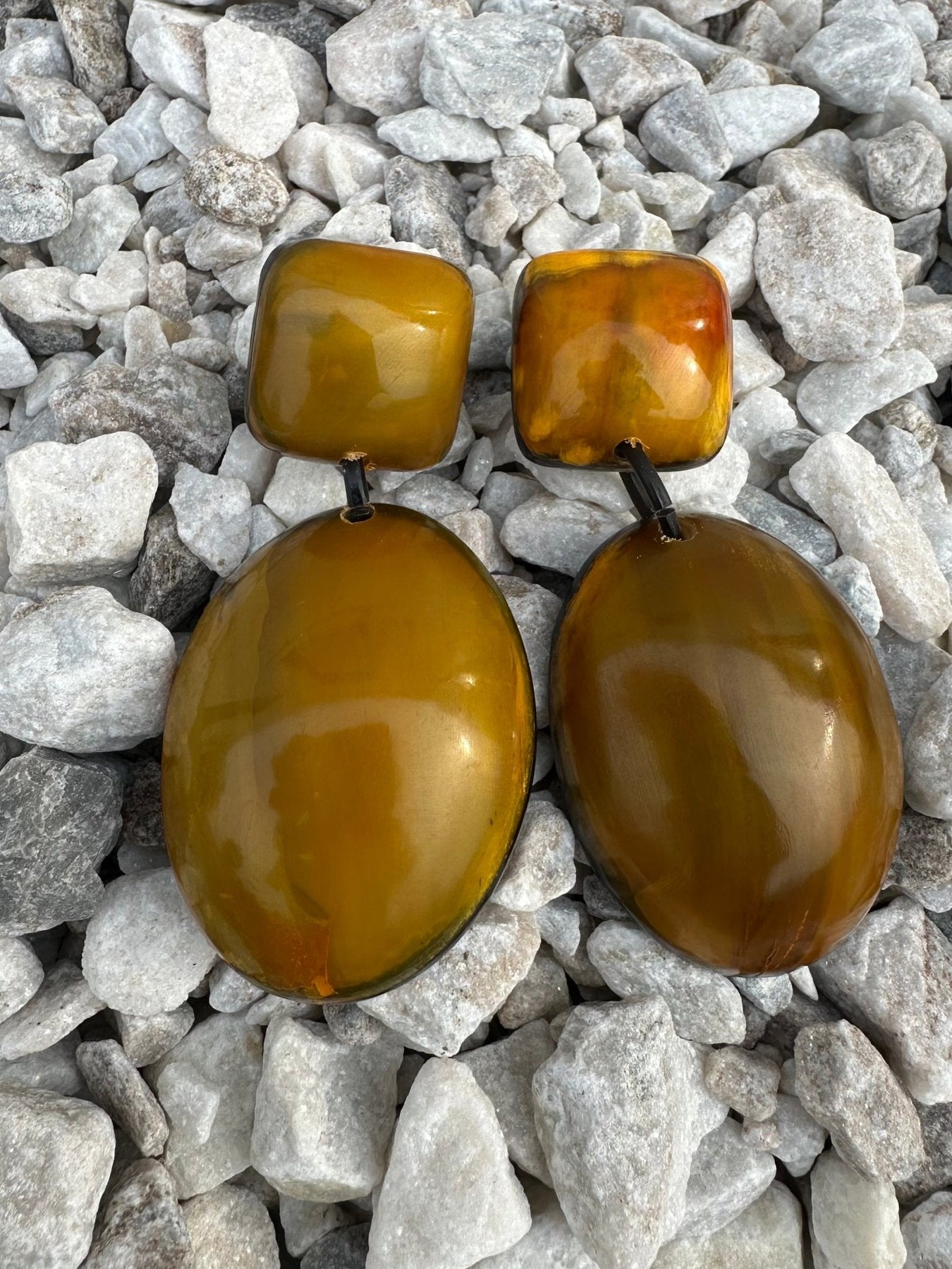 These Earrings are handcrafted from natural horn and hand-dyed in rich, radiant tones—from fiery reds and cool blues to earthy neutrals. Due to the nature of this artisanal process, no two earrings are ever the same—even within the same color family.